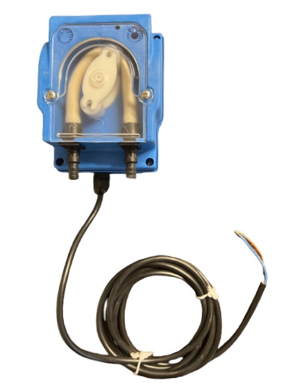 Doseringspumpe 220v, monteres frittstående, kan benyttes samme med alle typer 220v vaskeautomater. Nippel for slanger 7,5mm